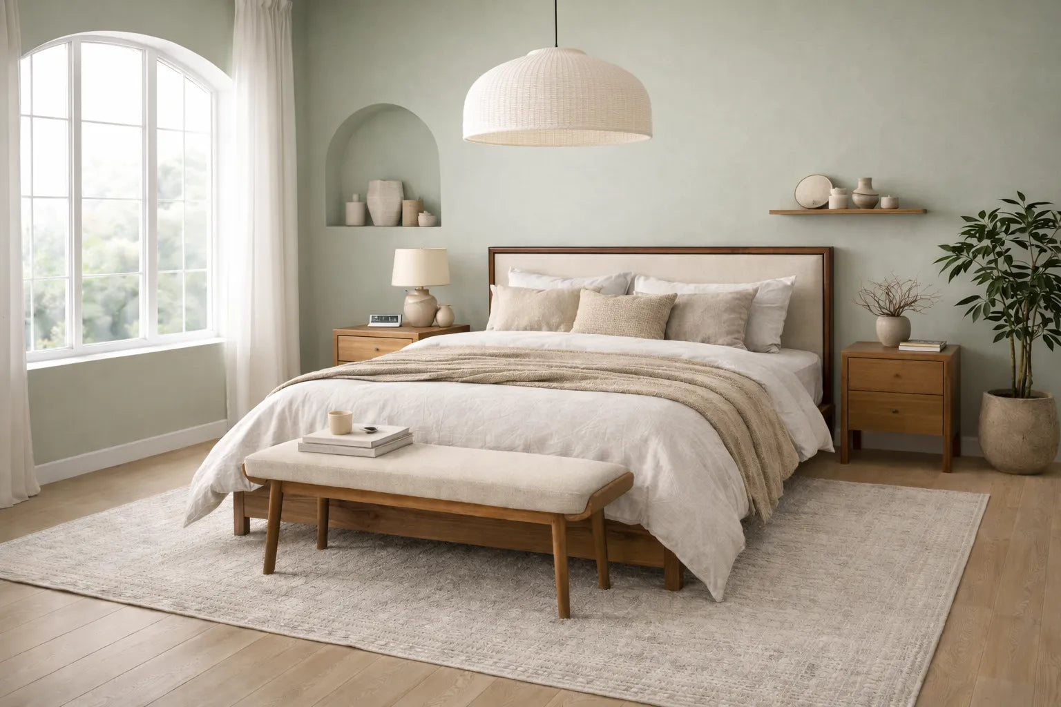 Nordic Retro Linen Ceiling Light │ Japandi Minimal Bedroom Hanging Lamp