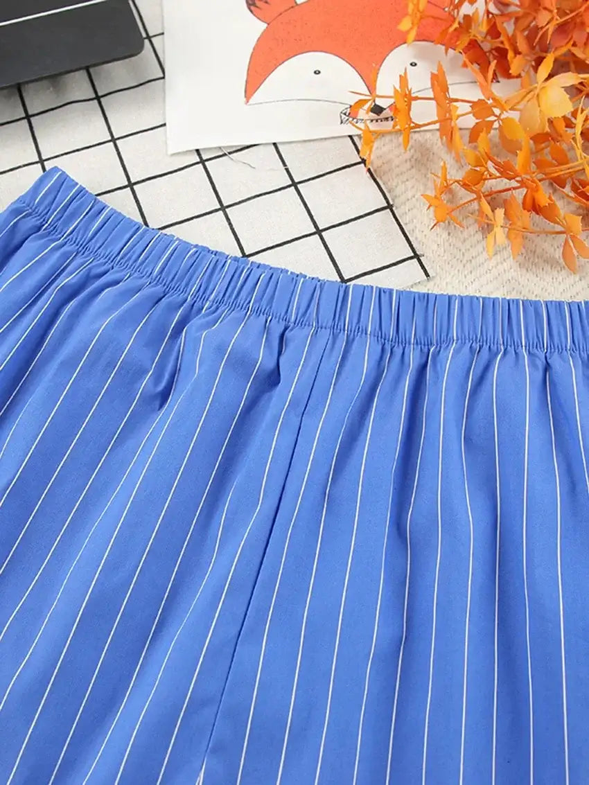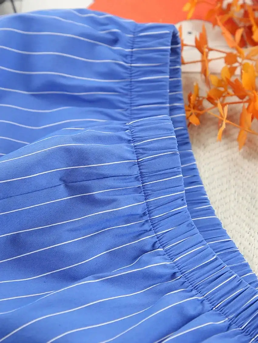 Pyjama moderne à manches longues en coton rayé bleu et blanc – Ensemble minimaliste 2 pièces pour la maison et les vêtements de nuit