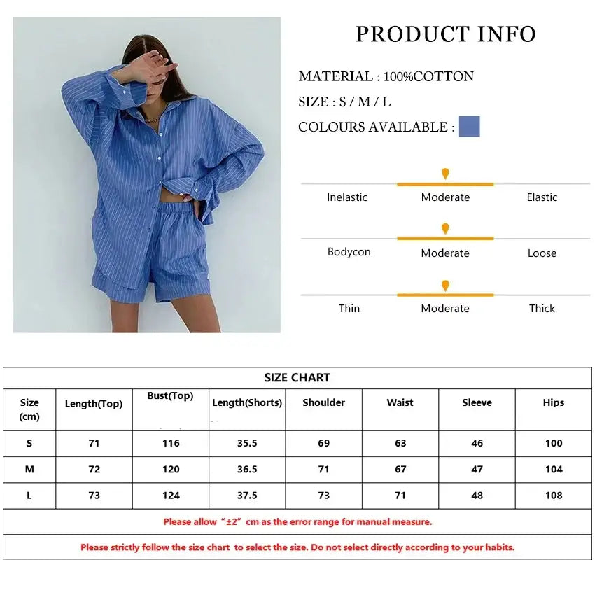 Sublimez vos moments de détente avec l'élégance naturelle de notre pyjama à manches longues en coton rayé bleu et blanc moderne : un ensemble deux pièces minimaliste alliant confort respirant et style épuré. 100 % coton doux , cet ensemble de nuit rayé est léger, aéré et conçu pour ceux qui apprécient le design moderne et le confort optimal.