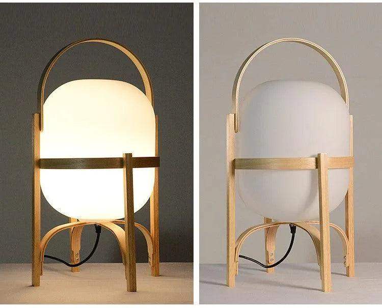 Lampe de table nordique en bois avec boule de verre │ Lampe d'ambiance de chevet minimale │ Lampe de bureau LED moderne et chaude