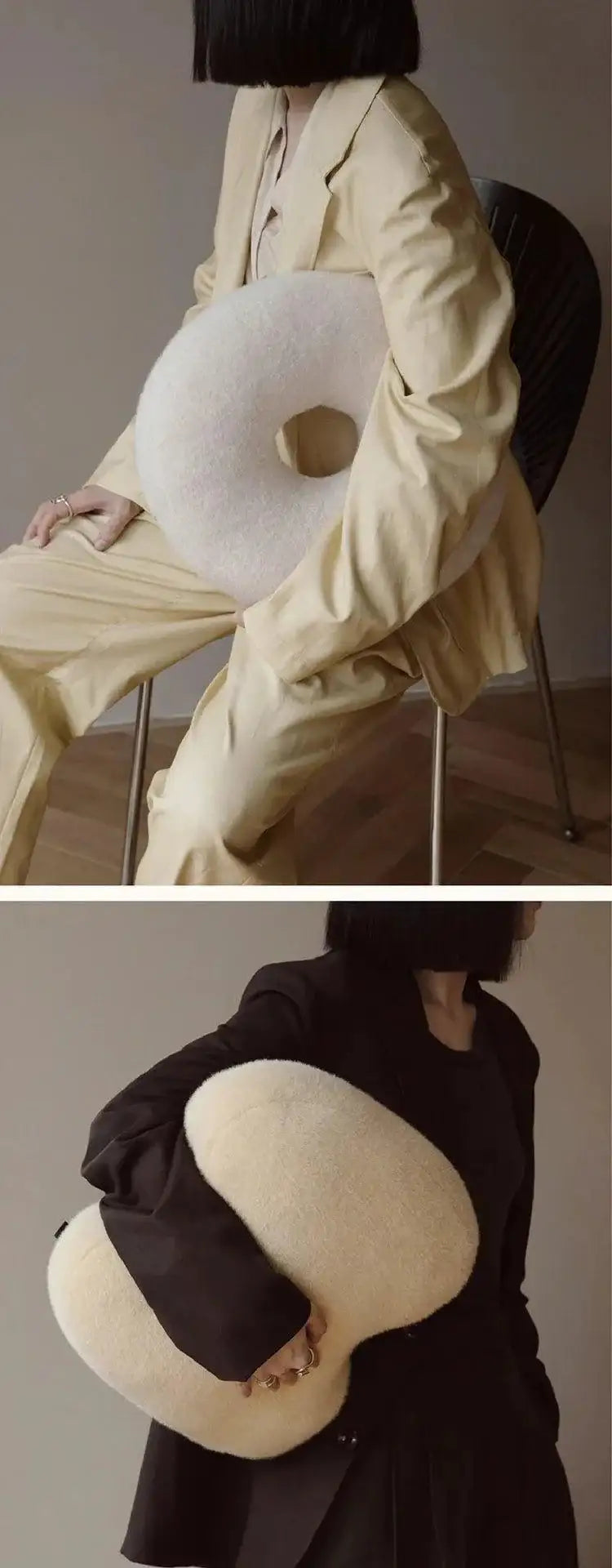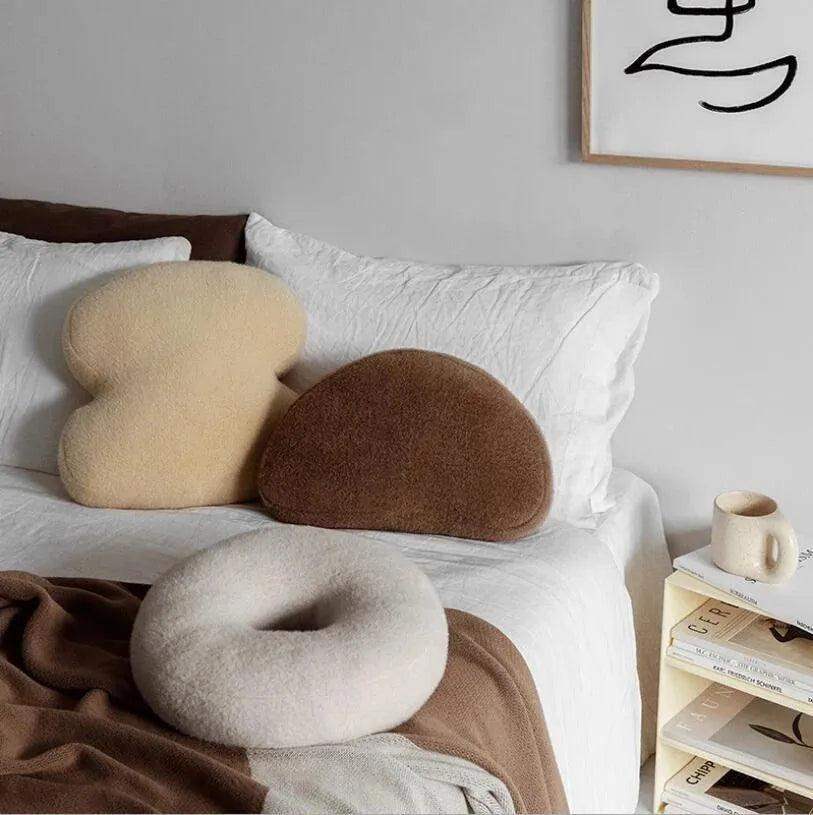 Geometric Solid Plush Sofa Cushions │ Neutral Tone Decorative Throw Pillows