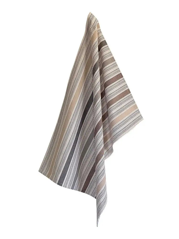 Hochwertiges Geschirrtuch aus reiner Baumwolle in farblich abgestimmtem Streifendessin.  Dieses Geschirrtuch aus hochwertiger Öko-Qualität passt hervorragend zu jeder anspruchsvollen Küche.