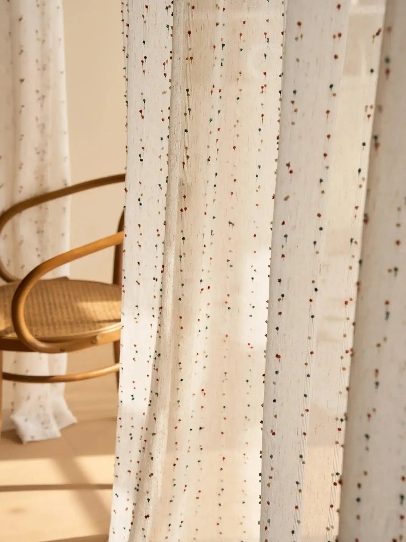 Vintage Rainbow Embroidered Translucent Gauze Curtain │ White Linen Tulle Yarn Curtains